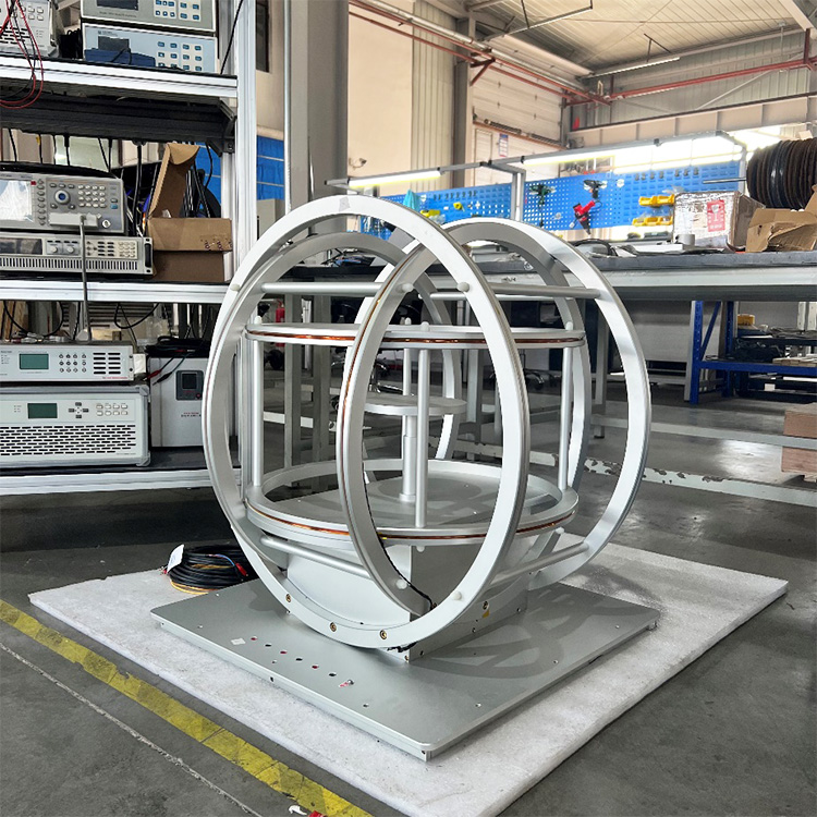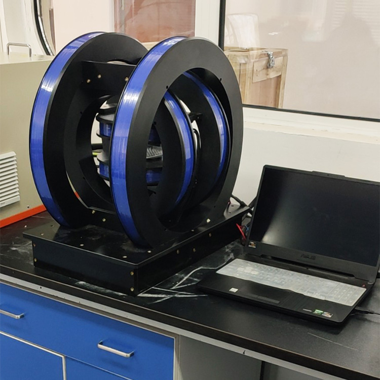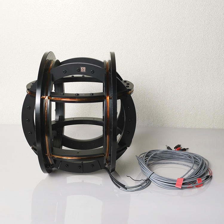 Characteristics of 3 Axis Helmholtz Coil: X, Y, Z axial magnetic fields, generally lower magnetic fields per axis. It is especially suitable for generating standard magnetic fields, canceling and compensating the earth's magnetic field, geomagnetic environment simulation, determining magnetic shielding effects, electromagnetic interference simulation experiments, calibration of Hall probes and various magnetometers, and research on biological magnetic fields and magnetic properties of materials.