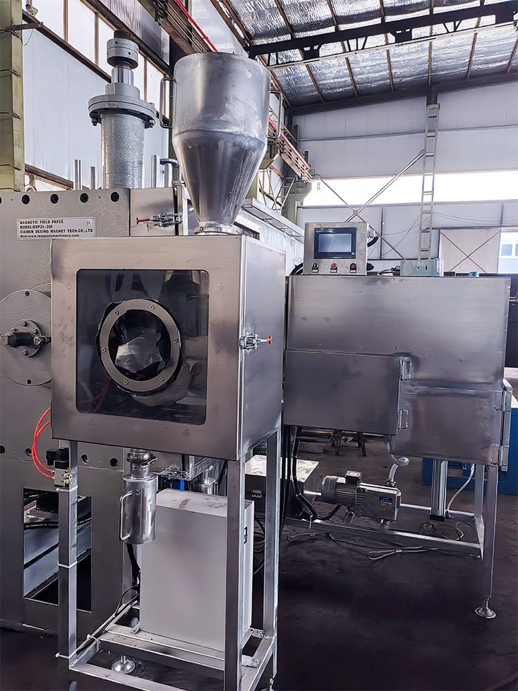 When the electromagnetic coil passes current, a spatial magnetic field with relatively parallel magnetic lines of force is generated between the two pole heads, thereby achieving the purpose of orienting the magnetic powder.