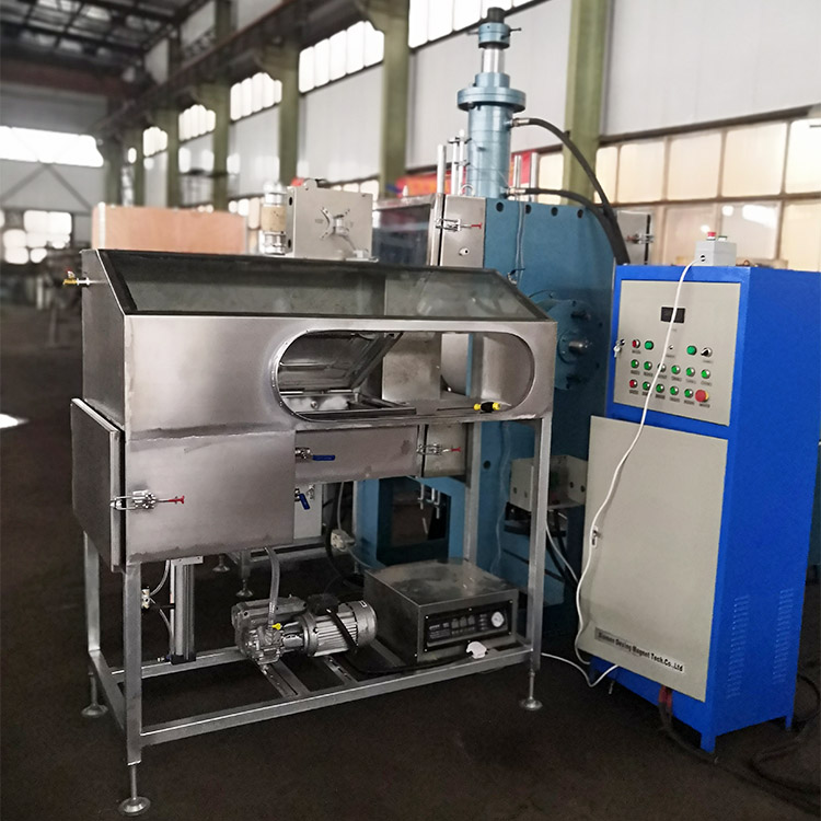 It is mainly composed of base, electromagnet and oil cylinder. The electromagnet is the core of the magnetic field. When the electromagnetic coil passes through the current, the magnetic circuit formed by the yoke and pole produces a space magnetic field with the magnetic lines of force relatively parallel between the two poles, so as to achieve the purpose of magnetic particle orientation. The cylinder is controlled by the hydraulic system to realize the action of pressing and returning.