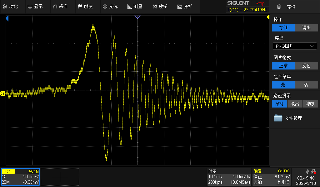 2. Observe the resonance signal of the fluorine nuclei in the polytetrafluoroethylene (solid) sample and measure the corresponding g-factor.