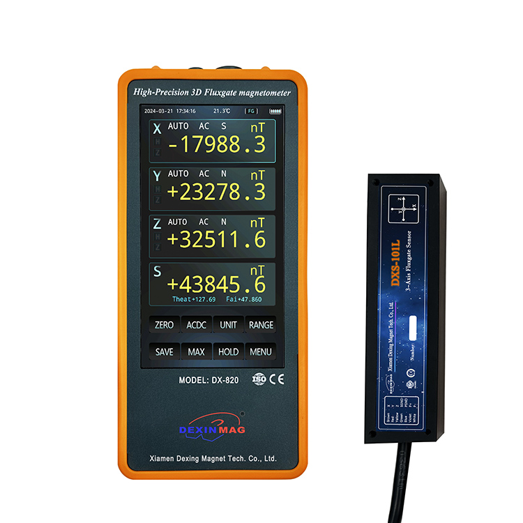 The new generation DX-820 high-precision Handheld Triaxial Fluxgate Magnetometer is a groundbreaking product developed by Xiamen Dexing Magnet Tech. Co., Ltd.(Dexinmag), drawing upon years of experience and technological accumulation in weak magnetic field testing for the aerospace and military industries. It embodies cutting-edge technology and represents a revolutionary advancement in the field.