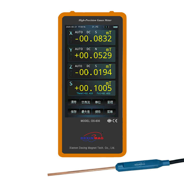 DX-350 3D Gauss Meter adopts advanced ARM microprocessing technology and uses multi-channel synchronous acquisition and processing technology to simultaneously display the magnetic induction intensity in the x, y, and z directions, and automatically calculate and display the Bxyz vector superposition value.