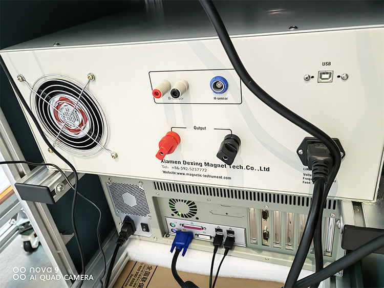 The whole measurement process is: the computer sends the excitation current signal to the DX-9700HC excitation power supply through the data acquisition card and controls the measurement process at the same time. The excitation signal usually used is an integral period waveform, which is approximate to a triangular wave. Under the action of the excitation current, the electromagnet produces a changing magnetizing field. At the same time, the DX-210H Gauss meter sends the magnetic field intensity signal and the DX-210B fluxmeter sends the magnetic flux signal to the dual-channel A/D converter of the data acquisition card. The A/D converter converts the dual-channel voltage signal from analog to digital quantity and then sends it to the computer. After the computer obtains the whole period measurement signal, it uses software technology to carry out various calculations and processing, and finally gives the measurement results and various graphics. The entire test process is about 60-120 seconds.